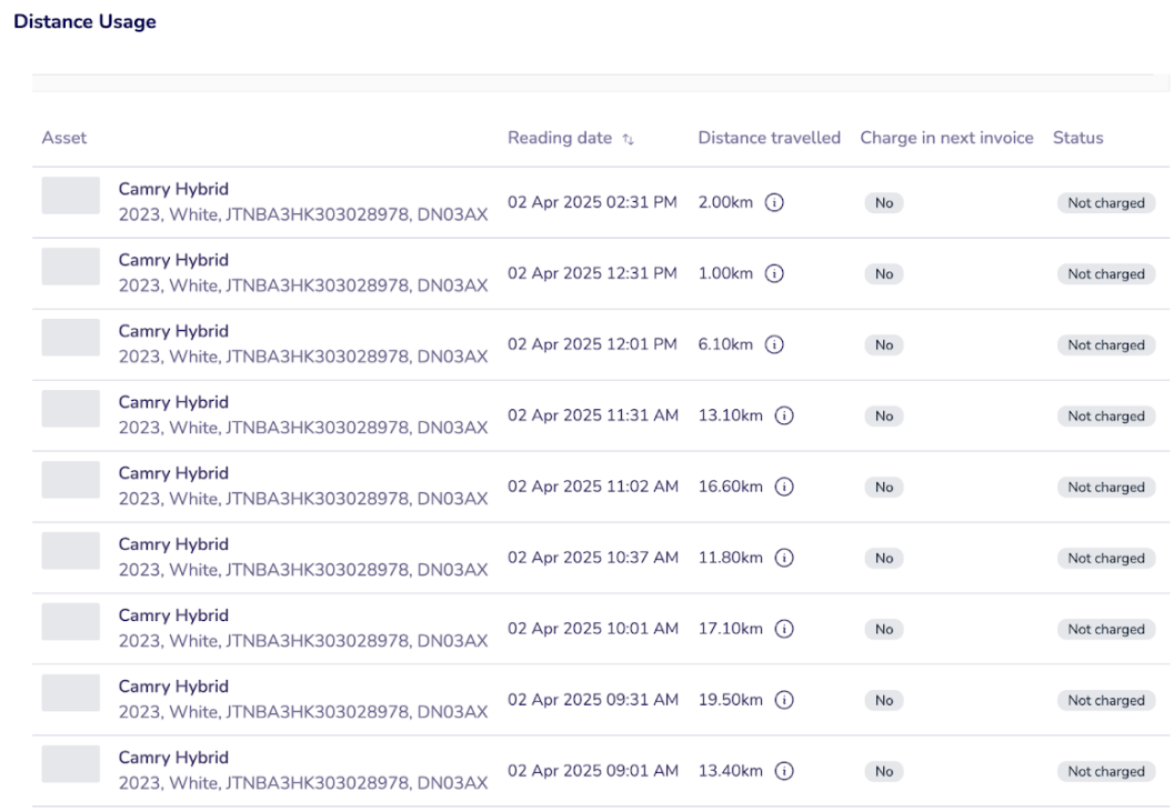 * Mileage data is sourced from telematics devices or manual odometer readings.